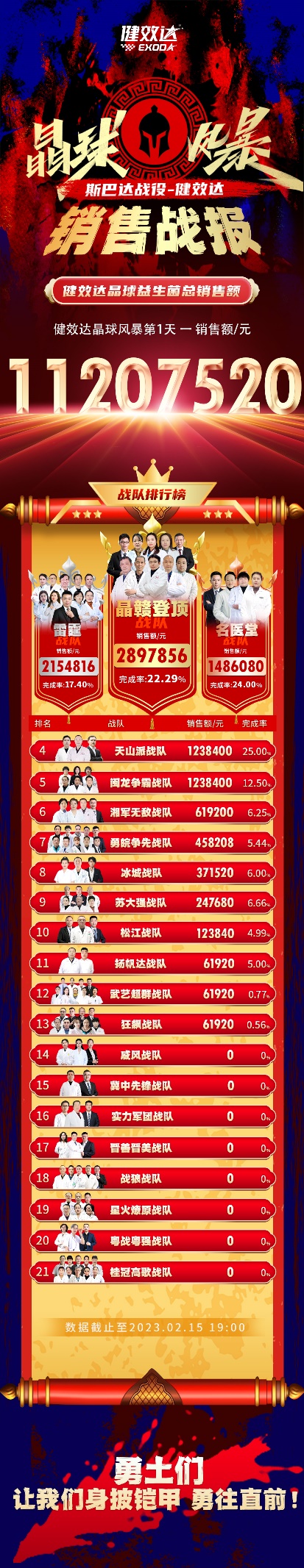 开局即领跑,征途必胜利,斯巴达战役——健效达晶球风暴,风暴还在狂飙,战局还在继续,21支战队集结完毕,秣马厉兵,来势汹汹,谁将黑马崛起,我们拭目以待!