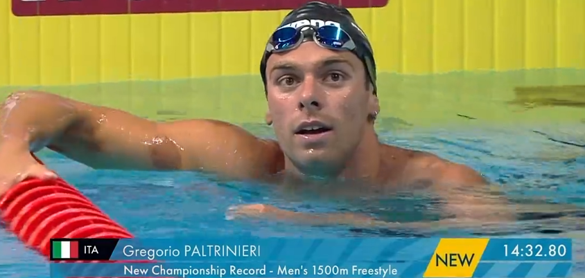 1450米的转体,世界纪录红线以更快的速度超越了帕特里尼耶里。帕特里尼耶里在50米的时候,明显没有孙杨那么快的速度,孙杨将他甩在了后面。孙杨虽然没有参加比赛,但是这个红色的世界记录线,却让所有人都为之兴奋。在奥林匹克运动会上,这样一位中国游泳选手在游泳方面取得了如此惊人的成绩。