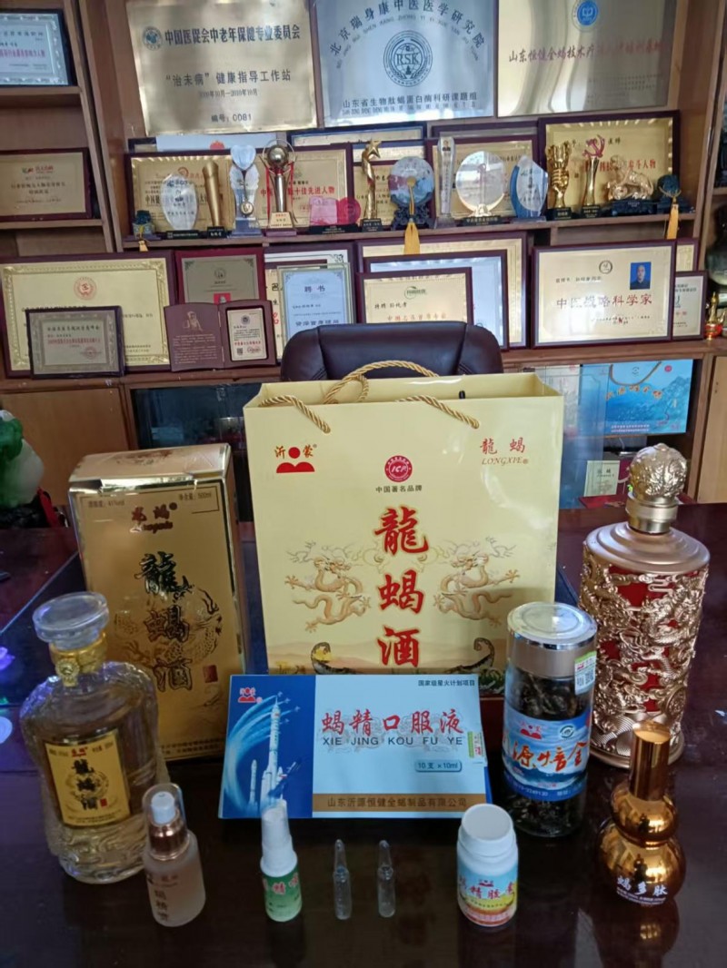 7、“龙蝎酒”选用优质粮食酒为基酒,配伍蝎毒、穿山龙、虫草、大枣、枸杞等多味中药材,精心加工而成,具有祛湿、通络、消炎、止痛、抗病毒、抗衰老等功能,已获国家发明专利。1999年获全国食品博览会金奖,2004年人民大会堂中国农业经济发展论坛既重点项目推广大会指定用酒和重点推荐产品,2008年中 央机关老干部康乐文化指导中心指定为共和国老部长、老将军特供酒,2009年12月龙蝎酒被第四界驻华大使年会指定用酒,2010年、2011年商务部中外项目交流会指定用酒,2012年中国品牌质量盛典指定用酒。
