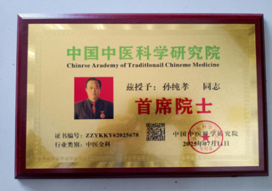多年来,孙纯孝获得诸多荣誉与称号,被誉为“中华蝎王”中国工程院院士,国医大师,“国医泰斗”,曾先后被评为中国科技之星、劳动模范和拔尖人才,中国医疗卫生着名专家,中国国际权威专家,中国管理科学院研究员,香港国际科学院院士,中国医师协会“治未病”讲师,中国医促会中老年健康指导委员会委员,2007年度中国十大领军人物等,被入编《中国贡献》《科技引领未来》等众多文献,人民日报、中 央电视台等多家媒体对其进行报道。此次荣获七一荣誉勋章,更是对他在医疗卫生领域突出贡献的高度认可,这不仅是他个人的荣耀,也是整个中医创新领域的骄傲,激励着更多人投身中医事业,为守护人民健康贡献力量。