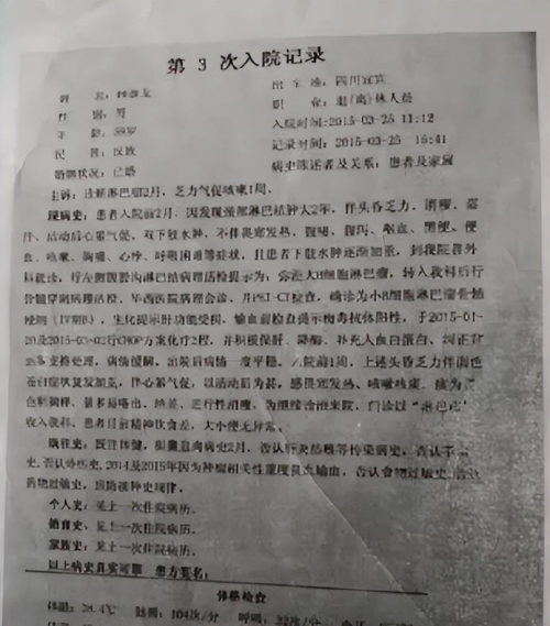 1、四川宜宾钟继龙先生患淋巴癌
