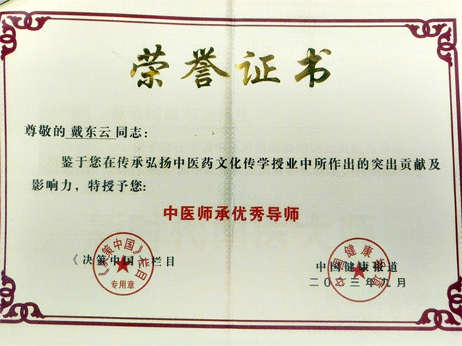 自幼得到了三台名中医祖父戴平安先师中医学的指点,熟记医门总决、药性、汤头。1974-1977年在父亲身边(父亲戴凤仪58年华西医大本科毕业,曾在四川省人民医院外三、绵阳市肿瘤医院工作,任外科主任医师)学习中西医,熟读《家传医书》《医学辑要》《伤寒六经证法》《医学三部曲》等并临床实践三年。1984在四川省人民医院《中外科痔痿科》、《中骨科》、《门诊手术室》进修学习,得到了四川省人民医院老专家何体干、余明滔、冯文新、杜琼书、陈梦云、陈兆祥、雷辉先、薜兆满、曹文安等教授的精心指教,使中医外科、门诊小手术的操作技巧,得到的发扬及传承。