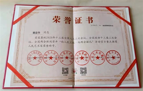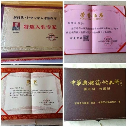 2006年6月18日被评为“中华人民共和国有突出贡献的专家”,编号为008609910908。2007年12月评为“中国国际权威专家”。2008年5月31日,“健康中国---全国中医药文化建设高层研讨会暨中华医学最具创新成果颁奖典礼”在全国政协礼堂隆重举行,谢忠伟同志作为贵宾代表光荣的出席了本次盛会,荣获学分证书,被授予国家级继续教育学会6分,并荣获“杏林奇葩”荣誉勋章;“大医精诚”荣誉牌匾,“疑难杂症探索杯”,“中华医学专家最具创新成果”光荣册,个人简历及论文成果入编《大医精诚》---共和国杰出医学专家风采录。2008年10月应邀出席“感动中国2008全国杰出贡献爱国人士国庆座谈会”,被授予“全国百名杰出贡献爱国人士”称号。2009年5月被中国文化管理学会文化经济专业委员会及中国文化管理学会艺术管理专业委员会授予“中国百名优秀代表人物世纪专版”荣誉金奖。2009年荣获决策者军旅人物专刊部《军魂中华英雄儿女》。2009年3月荣获“21世纪国际知名医家金库才华奖”。2010年6月全国行业纪律督察委员会授予“2010叱咤中国医学行业十大风云人物”,2010年6月30日中国中国信息管理协会,中国科技财富杂志社授予“影响中国行业楷模荣誉证书奖牌”,2010年10月19日全国书画家职称认定委员会授子谢忠伟“国家特级书法师”。2010年12月6日全国高健委名医名院发展促进专业委员会国务院九部委联合机构等单位联合授予名中医专家委员会“首席专家”。2011年元月7日,颁发“腾飞中国——2010年最具影响力的年度十佳人物”,2011年中国共产党成立90周年,评为“共和国杰出共产党人”,并授于“一级勋章荣誉”称号,香港国际中医人才研究院,香港现代医院管理协会、中外名人风采杂志编辑部联合评为“2011年世界华人知名医家卓越成就金奖”。2011年5月全国爱国者协会授予“盛世中华公益人物”,2011年6月中国医学国际发展联合会授予“资深首席专家(终身制)”。2012年2月中华名医协会副会长,2012年12月中华名医协会特色诊疗专家委员会授予“名誉会长”。2012年2月“中华当代百强名医”,2012年12月中国杰出爱国模范人物,2013年中国当代书法大师,中国书画研究院院士,2013年中国科学家协会终身副理事长,国际名医联盟网终身国际专家。2014年5月中华医学国际发展联合会获得中国梦健康万里行健康大使称号。2014年5月,全国劳动英模称号。2014年8月祖国杂志社评为百佳军旅英雄,并为本书荣誉主编。2014年9月中华医学国际发展联合会获得中国梦,国医魂,中国好医生称号,2014年9月第十一届科学家论坛评为优秀论文一等奖,2014年10月新中国建设功勋人物,2014年9月增补为中国科学家论坛理事会会员(任期三年)。2014年度中国科技创业突出贡献单位。2015年荣获“共和国文艺爱国贡献奖”“世界文艺贡献奖”“中国军魂英雄人物称号”。2015年7月北京国际中医药研究院聘任资深院士。2015年8月中国诗书画出版社授子“一代宗师”。2015年9月中国国家诗书画院评为“终身常务副院长”同时授予“荣誉院长”,2015年9月中华医学国际发展联合会评为“中国好医生”。2015年11月评为“北京故宫博物院最具有收藏和影响力4大艺术家”。2015年12月世界文化名人协会评为“世界艺术创作金奖·世界杰出文化圣贤”。2016年1月1日中华民族复兴联合会聘为“终身名誉会长”。