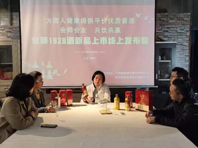 在12月8日的线上发布会上,广西龙凤仙草生物科技有限公司、贵州龙凤仙草酒业有限公司董事长练向红女士与各地经销商相聚云端,广西龙凤仙草生物科技有限公司、贵州龙凤仙草酒业有限公司覃总工程师在线讲解了会师酒工艺和特点。新品会师1928酒线上发布会大获成功!