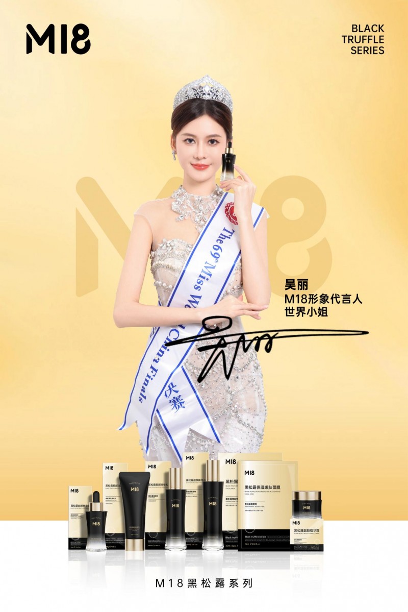 为了将专业护肤的理念精准传达给消费者, 并达到破圈效应,M18黑松露精华油隆重官宣世界小姐吴丽担任代言人。