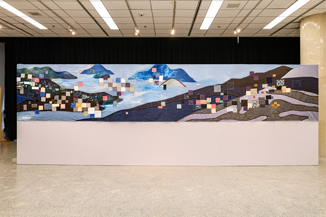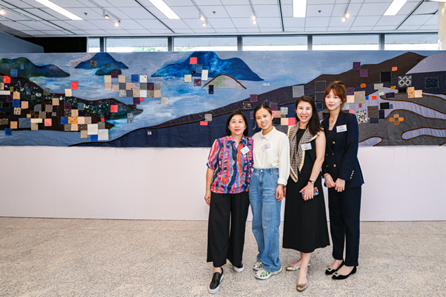 在简丹的作品里,观众既能看到荃湾纺织厂房的轮廓剪影,感受到当年机器轰鸣的繁盛景象,也能瞥见城门水塘的粼粼波光、大帽山的青葱绿意,仿佛置身于历史与自然交融的场景之中。这件作品不仅是对荃湾纺织历史的致敬,更展现了当代艺术家对传统文化的创新表达,为“织绘荃湾”展览注入了鲜活的当代艺术气息,也让更多人通过艺术视角,读懂荃湾纺织文化的过去与现在。