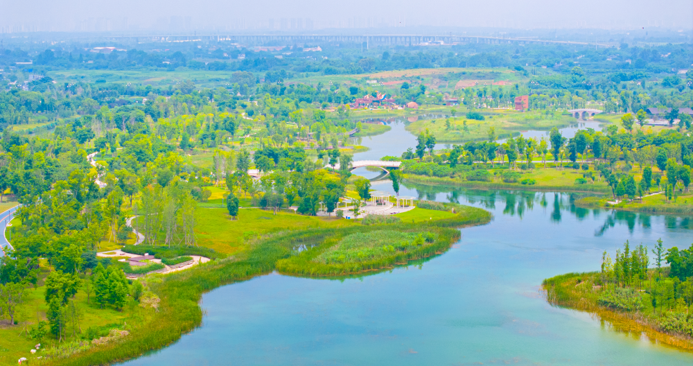 (都江堰水利工程引来的水滋养出东安湖体育公园生态美景。都发中心供图)