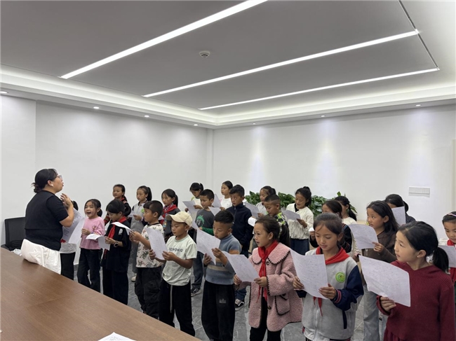 9月,“依诺阿依”童声合唱团成功举行开班仪式,标志着项目正式启动。目前,合唱团已建立规范化训练机制,每周安排3次专业课程,由专业指导老师进行系统教学,从发声技巧、乐理知识到团队协作,进行全面打磨。课堂上,孩子们目光炯炯,用清澈纯净的嗓音跟唱练习,古老的彝歌与现代的旋律在崭新的青少年宫里交融回响。他们的歌声,不仅是音符的传递,更是文化传承与自信建立的过程。