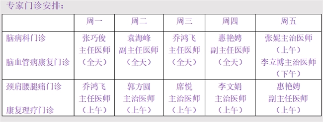 地点:脑病科门诊及脑血管病康复门诊——综合楼2层D区11诊室