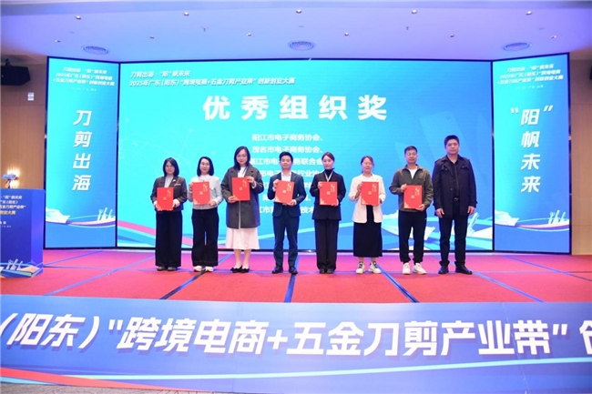 颁奖仪式上,颁奖嘉宾依次为获奖项目和单位颁奖。沉甸甸的奖牌与荣誉证书,不仅是对参赛主体创新实践的肯定,更是对阳东跨境电商+五金刀剪产业融合发展的期许。