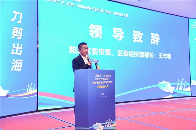 阳东区委常委、区委组织部部长王丰收在致辞中表示,作为广东省“跨境电商+产业带”助力“百千万工程”首批试点产业带,阳东始终秉持“服务企业、赋能发展”的理念,持续优化营商环境,全力推动跨境电商产业园落地建设,积极构建涵盖人才培育、物流、金融、结汇等全链条的跨境电商生态圈,