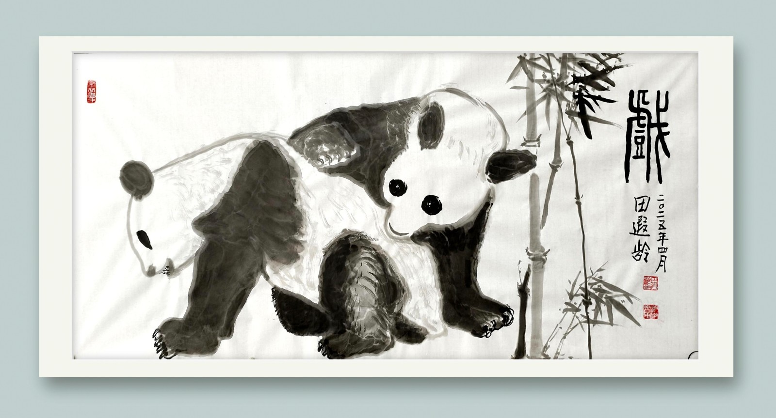 在绘画领域,田遐龄专注于花鸟画,尤其以画虾和熊猫见长。他学习传统绘画技法,从齐白石等大师的作品中汲取灵感。齐白石画虾的简洁生动、富有情趣,让他领悟到以少胜多、以形写神的艺术真谛。他通过不断地观察和写生,深入研究虾的形态、动态和神韵,力求在作品中展现出虾的灵动与活力。而对于熊猫的描绘,他则注重表现其憨态可掬的形象和温顺的性格,通过墨色的浓淡变化和笔法的运用,赋予熊猫画以生动的质感。