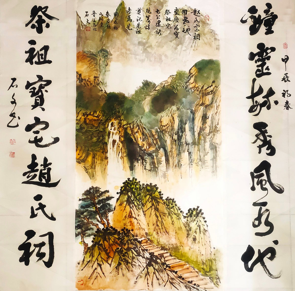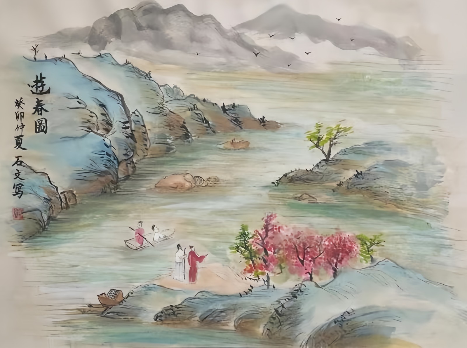 在绘画作品中,石文同样注重文化内涵的表达。他以绘画的形式展现自然之美、人文之韵,传达出对传统文化的敬畏和热爱。例如,他的山水画作品,不仅仅是对自然景色的描绘,更是对中华民族“天人合一”思想的诠释;他的花鸟画作品,则通过对花鸟的生动描绘,表达出对生命的赞美和对美好生活的向往。