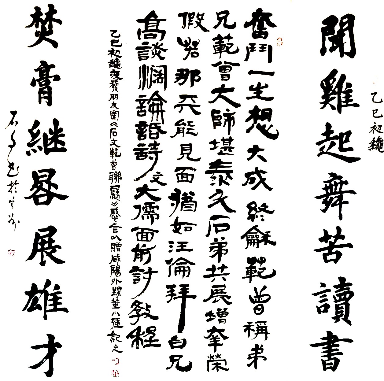 2016年春,二次赴京,在高碑店参加了杨赛峰老师为期近一年的首届书法培训班,系统地学习了行、草、隶、篆、楷诸体。