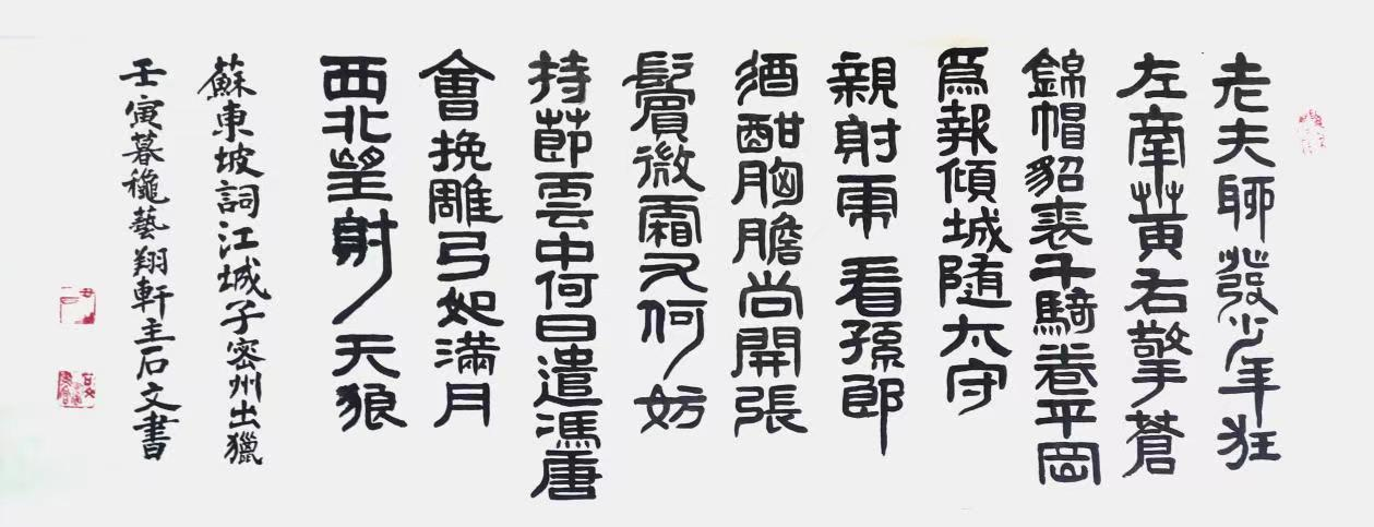在书法领域,石文广泛涉猎行、草、隶、篆、楷诸体,不断汲取传统书法的精华。2016年,他二次赴京,在高碑店参加了杨赛峰老师为期近一年的首届书法培训班,系统地学习各种书体。在这个过程中,他深入研究古代书法名家的作品,从王羲之的飘逸洒脱、颜真卿的雄浑大气,到苏轼的豪放洒脱、米芾的灵动多变,他都一一揣摩,领悟其中的神韵和技法。然而,他并不满足于对传统的模仿,而是在继承的基础上,大胆创新,融入自己的理解和感悟。他将陇东大地的豪迈与粗犷融入书法创作中,使作品既有传统书法的韵味,又具有鲜明的时代特色和个人风格。