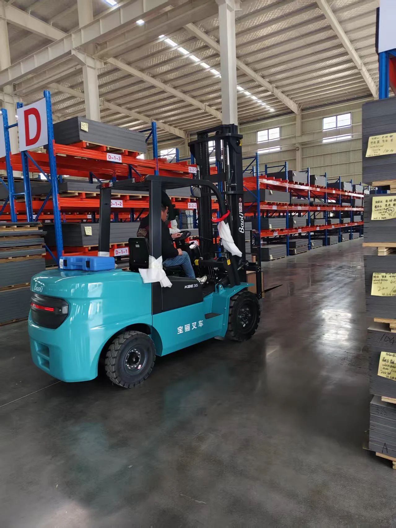 宝骊X1B以锂电为驱动力,相较传统内燃叉车,搬运铝塑板无废气排放,低碳环保,让企业坚定绿色转型的决心,助力华东地区实现可持续发展。