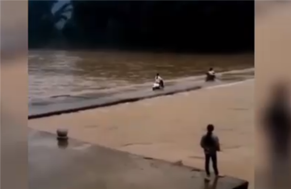 据南宁广播电视台新闻夜班报道,罗城小长安镇两名女生骑车强行通过漫水桥,因水流湍急连人带车被冲走。