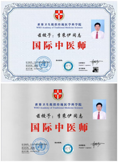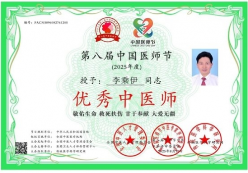 在荣誉面前,李乘伊不敢有半点松懈,他时常牢记恩师吕炳奎送给自己的话悬壶济世、医道无涯”,并以此来勉励自己。他一路走来,风雨兼程,厚积薄发从“中医一技之长特色疗法"、“优秀名中医特色疗法”,到“中国科技创新最佳发明成果奖”“亚洲医学科技荣耀奖”“中国管理科学研究与应用优秀成果奖”再到 2015 全国中医药十佳最具推广价值的特色创新疗法,一种疗法获得众多殊荣,不仅彰显其优越的治病疗效,更突出创立者的精湛医术。